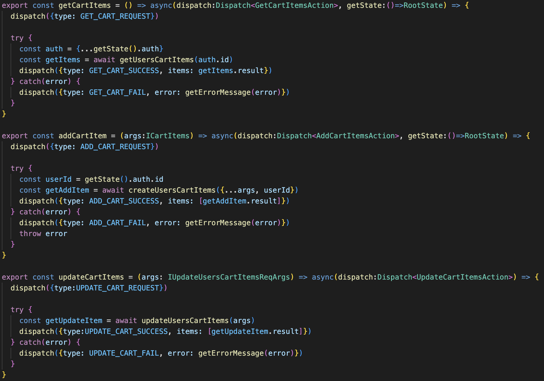 장바구니 DB에 아이템 정보뿐만 아니라, 유저정보도 API 통신을 통해서 CRUD 해주어야 유저별 장바구니를 관리할 수 있기 때문이다. 또한, 미들웨어를 사용한다는 것은 디버깅에 매우 강력한 힘을 갖고 있다. 미들웨어에서 액션과 상태를 체크해주면 문제점을 찾아내고 또, 뷰 단에서도 더 나은 UX를 처리할 수 있기 때문이다. 이뿐만 아니라, Google Analytics에 트래킹 이벤트 관리도 해줄 수 있겠다.
